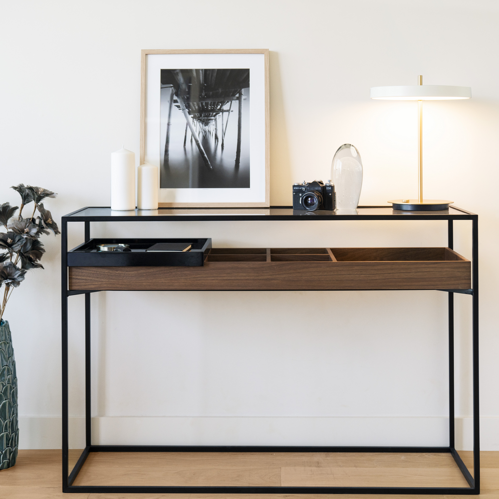 Si la console est traditionnellement un meuble d’appoint de nos entrées et de nos couloirs sur laquelle on pose ses clefs et le téléphone, elle se retrouve a