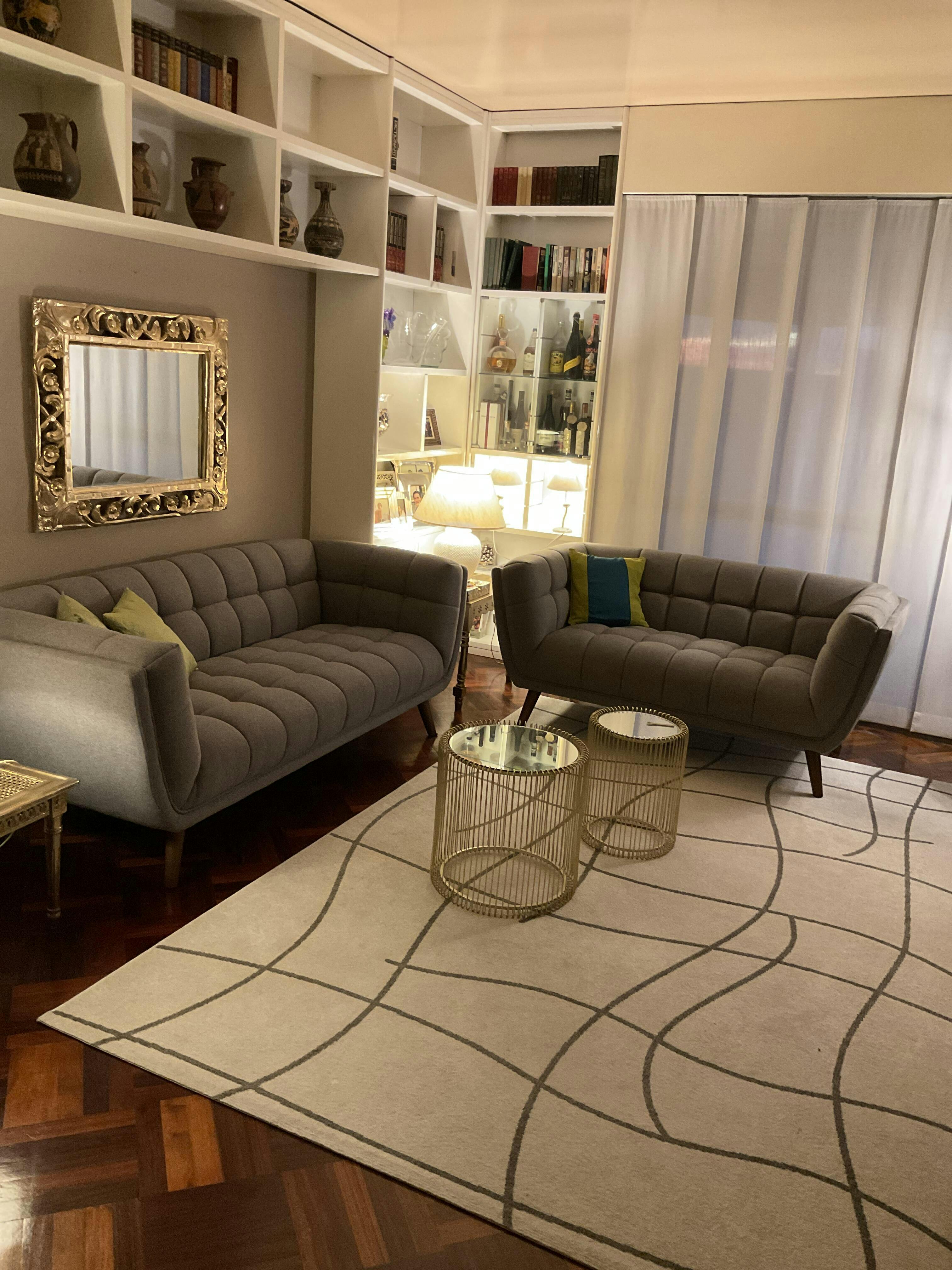 En gris clair ou gris foncé, on l’image aisément dans un intérieur hygge ou design, tandis qu’en velours bleu, il prendra selon votre déco d’intérieur des allures Art déco ou South scandinavian. En effet, avec des tables gigognes en métal doré et noir, il sera des plus chic, alors qu'avec l'aspect minéral d'une table en béton ciré, il devient moderne et design.