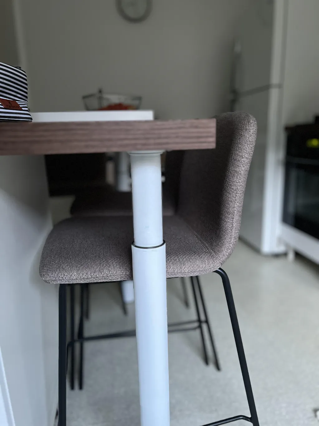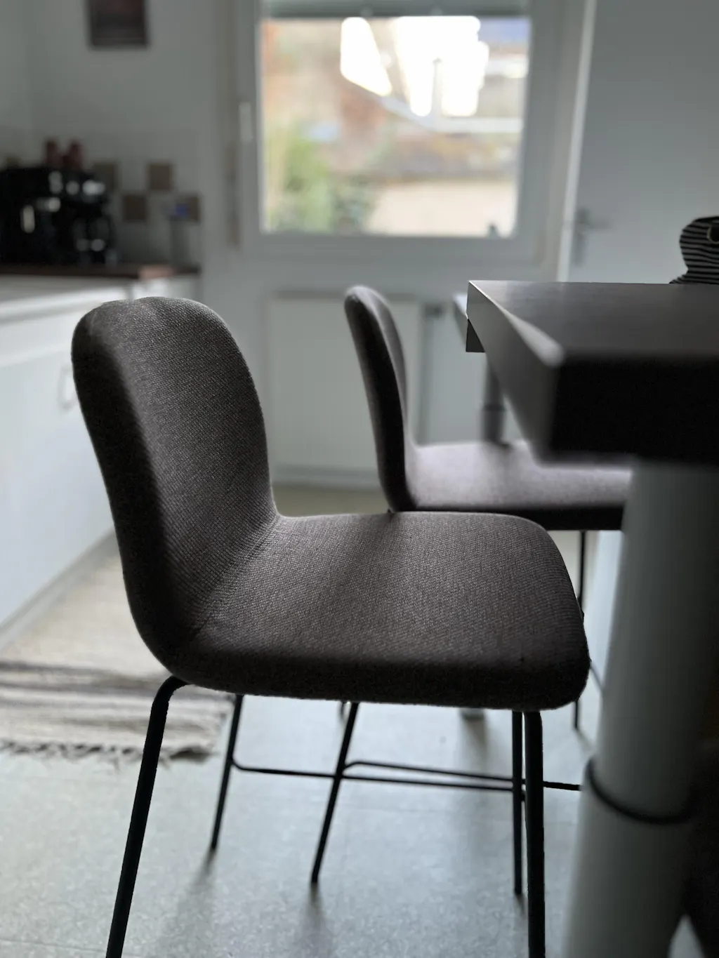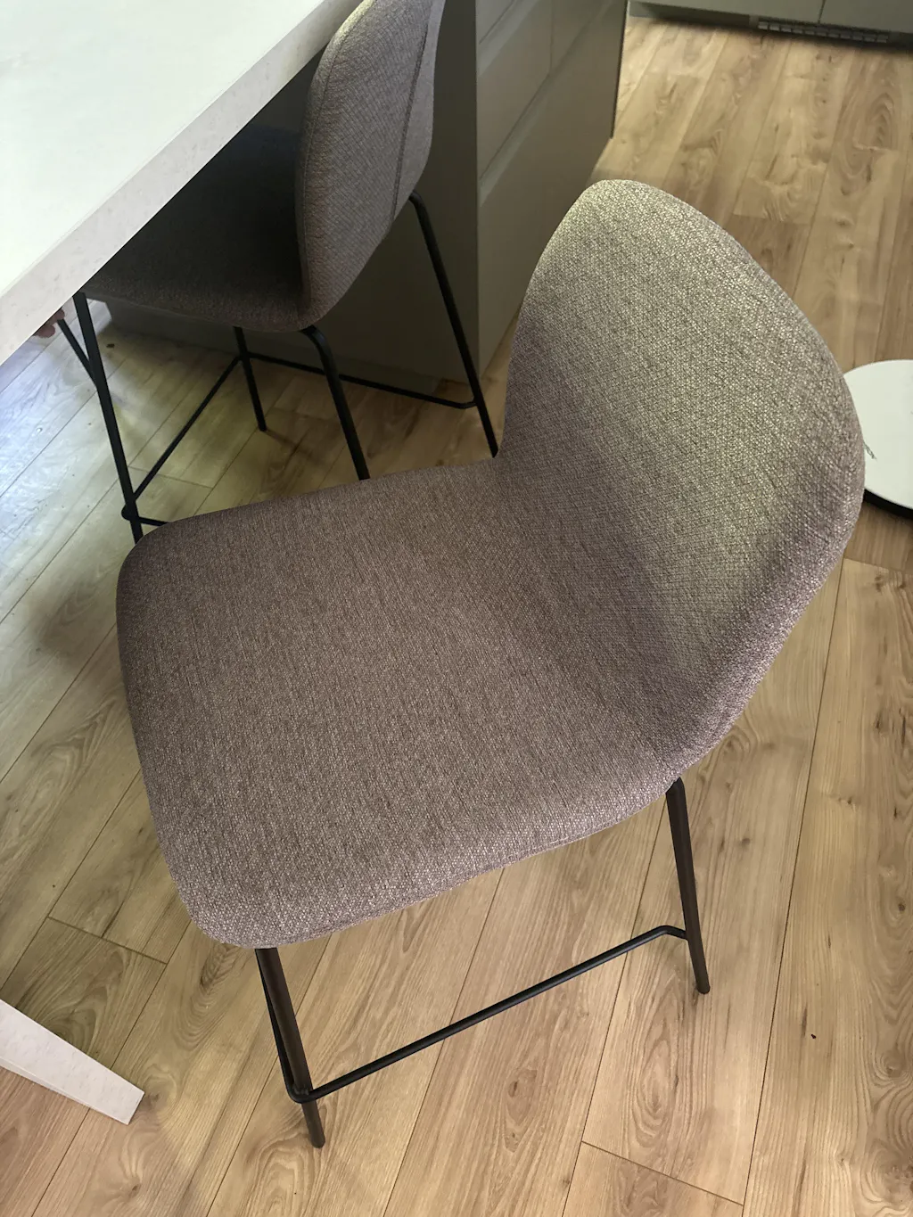 Déclinées en gris clair, gris foncé, marron clair et bleu foncé elles sont idéales pour les cuisines disposant d'un plan de travail ou d'un îlot central. En effet, la hauteur d'assise de 65 cm s'intègre parfaitement sous les plans de travail qui mesurent en général 70 cm.