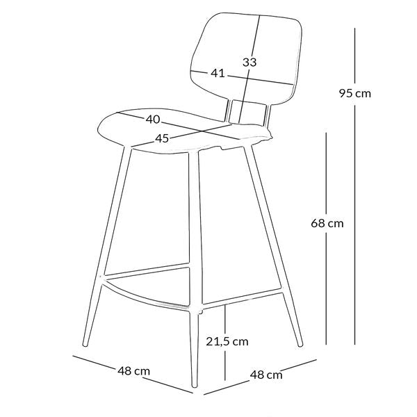 Cette chaise à une hauteur d'assise de 68 cm, ce qui lui permet de s'adapter facilement aux tables hautes et ilots centraux.